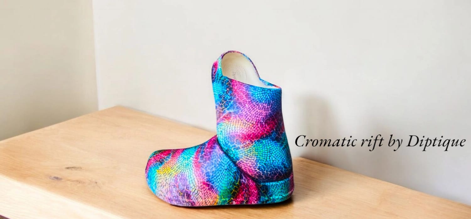 Chromatic Rift Clogs-Bold, Artistic Footwear